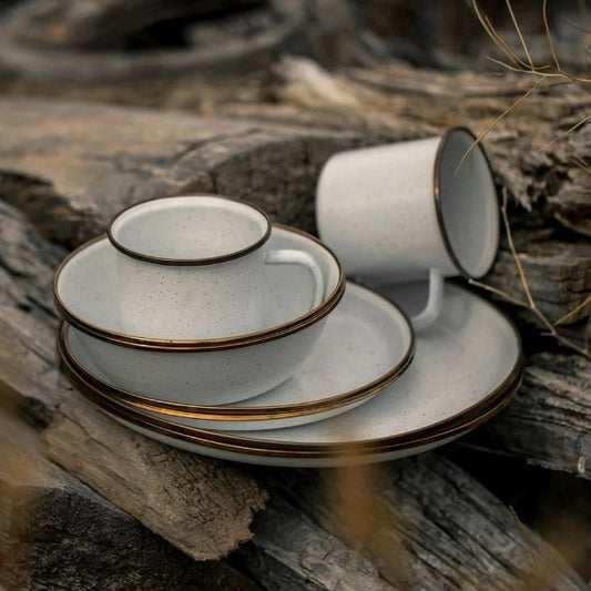 Barebones Living Enamel Plate set of 2 - Eggshell